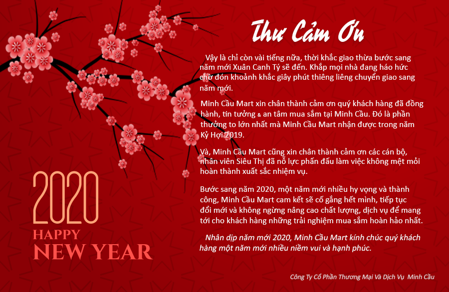 Minh Cầu Mart rất mong nhận được những sự góp ý cũng như sự tin tưởng sử dụng của quý khách hàng trong năm Canh Tý 2020.