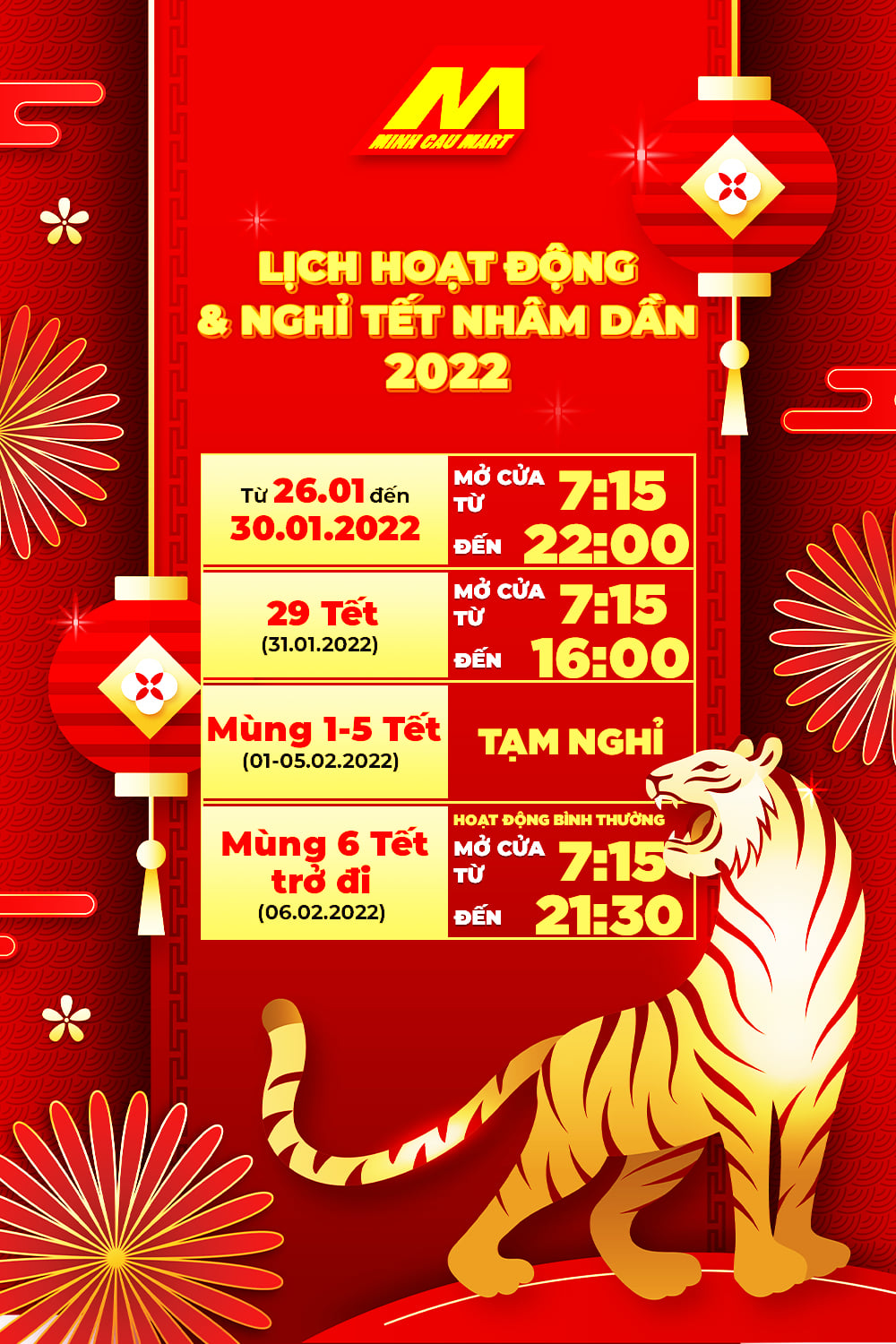 ?THÔNG BÁO LỊCH HOẠT ĐỘNG & NGHỈ TẾT NGUYÊN ĐÁN NHÂM DẦM 2022 TẠI HỆ THỐNG SIÊU THỊ MINH CẦU