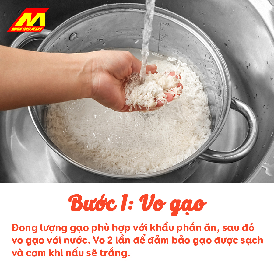 ? Bước 1: Vo gạo