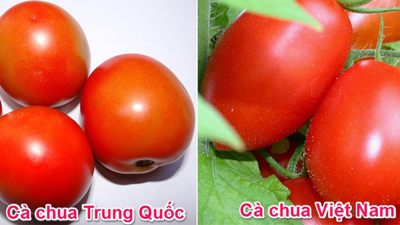 Cà chua Việt Nam: Thường có cuống, màu sắc tươi mới hơn.