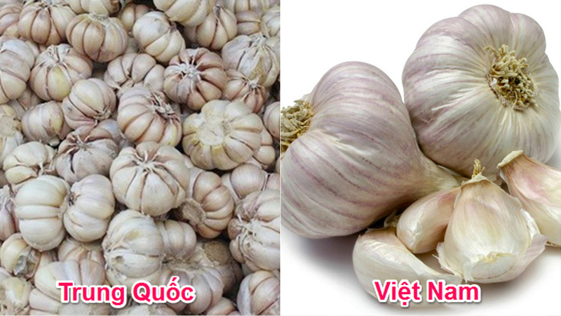 Tỏi Việt Nam: Củ nhỏ, các tép tỏi nhỏ hơn và khó bóc vỏ, đặc biệt tỏi Việt Nam dậy mùi hơn tỏi Trung Quốc ngay cả khi chưa cho vào chế biến.