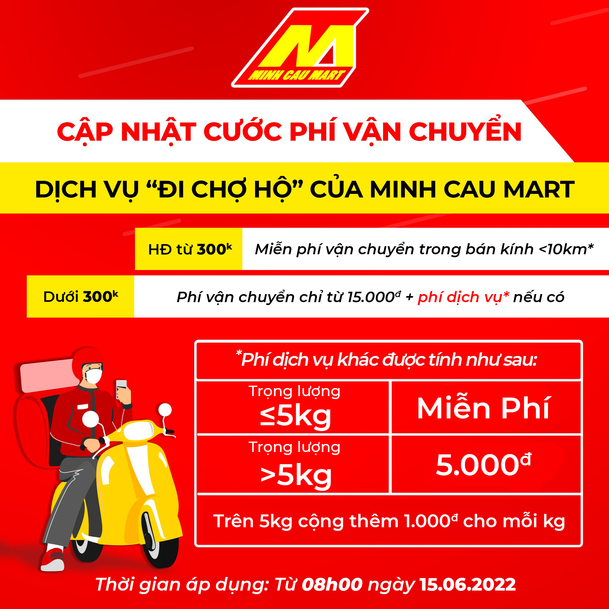??Minh Cầu Mart thông báo điều chỉnh phí vận chuyển cho các đơn hàng Online áp dụng từ 15.06.2022 như sau: