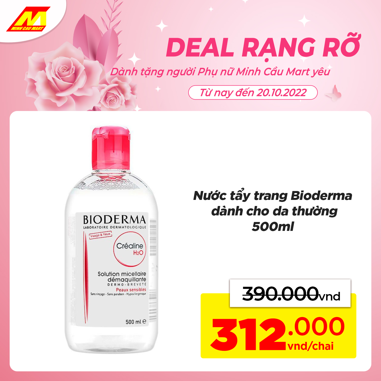 ?Nước tẩy trang Bioderma dành cho da thường 500ml GIẢM CÒN 312.000vnd/chai