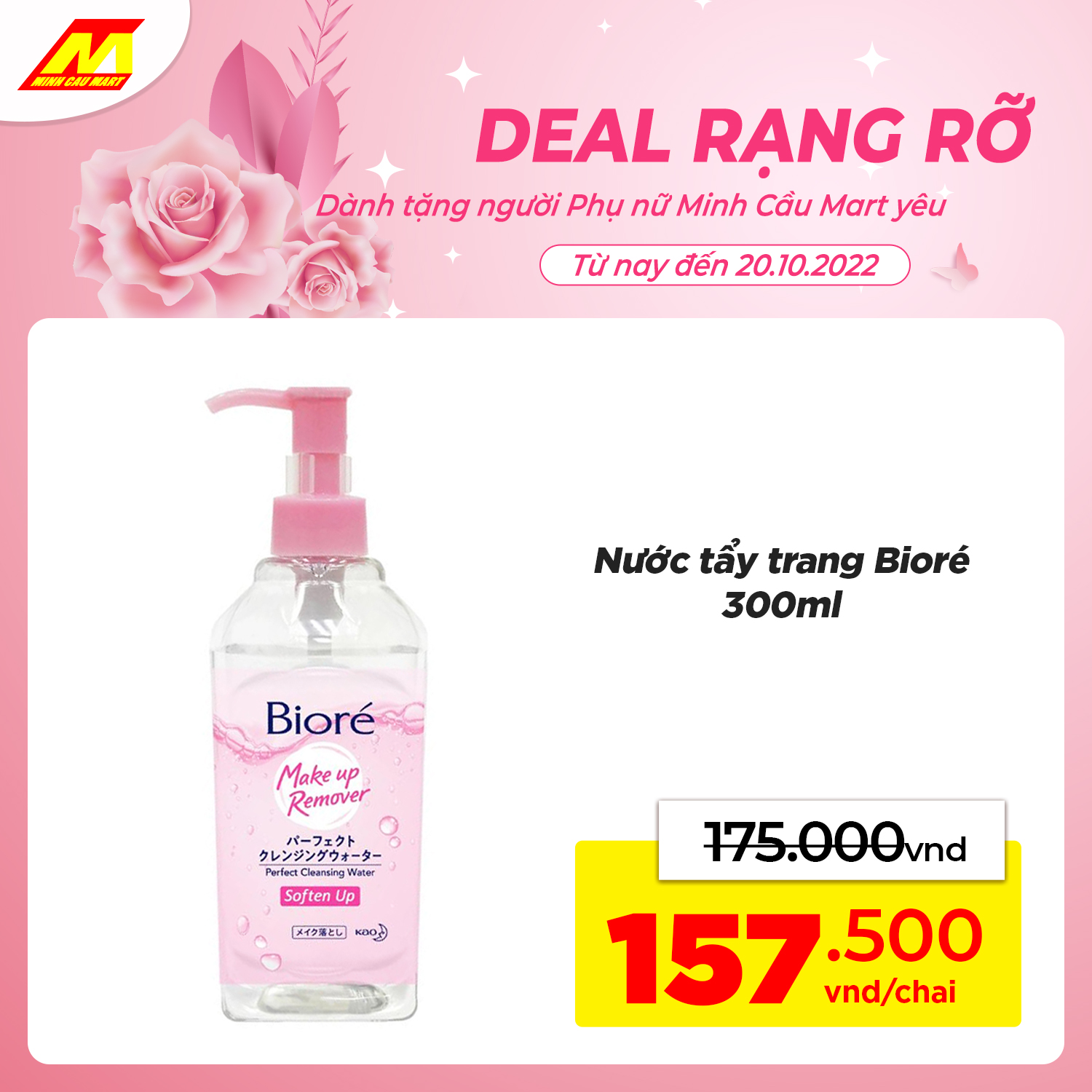 ?Nước tẩy trang Bioré 300ml GIẢM CÒN 157.500vnd/chai