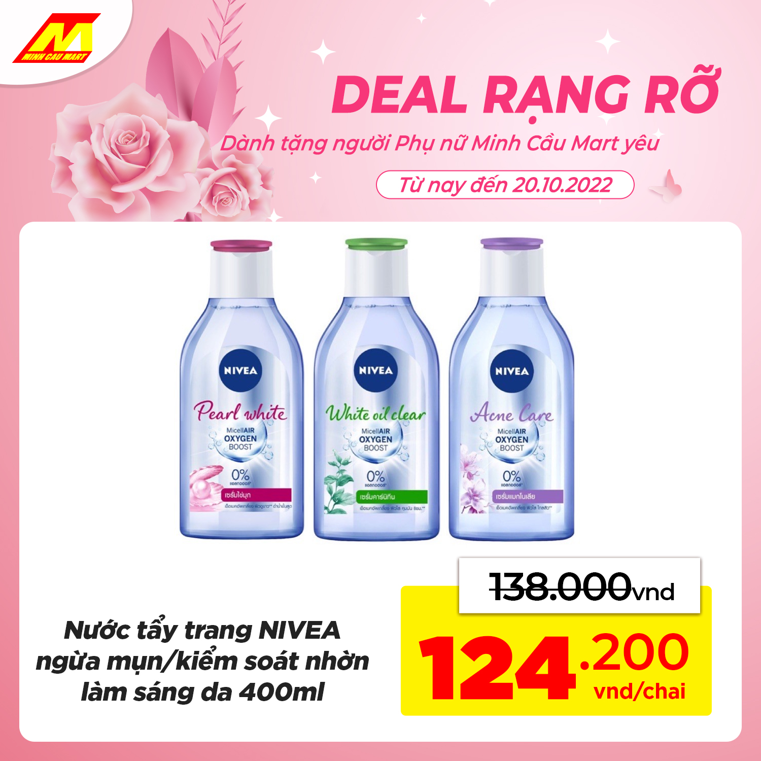 ?Nước tẩy trang NIVEA 400ml GIẢM CÒN 124.200vnd/chai
