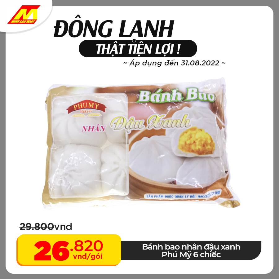 ? Bánh bao nhân đậu xanh Phú Mỹ 6 chiếc GIẢM CÒN 26.820vnd/gói