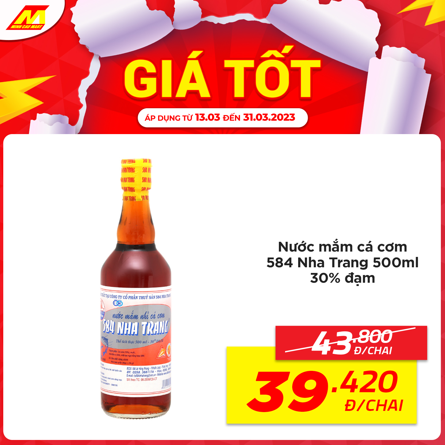 ?Nước mắm cá cơm 584 Nha Trang 500ml 30% đạm còn 39.420vnd/chai (Giá thường 43.800vnd)