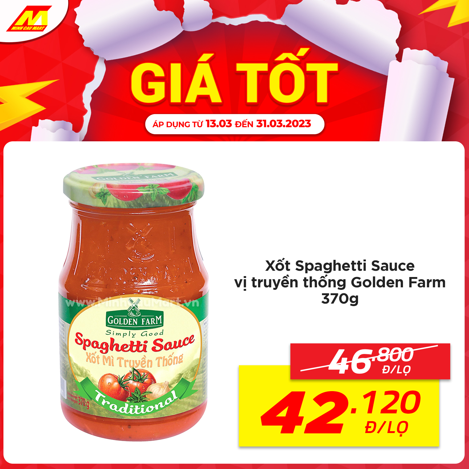 ?Xốt Spaghetti Sauce vị truyền thống Golden Farm 370g còn 42.102vnd/lọ (Giá thường 46.800vnd)