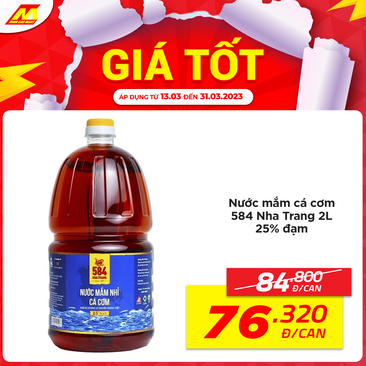 ?Nước mắm cá cơm 584 Nha Trang 2L 25% đạm còn 76.320vnd/can (Giá thường 84.800vnd)