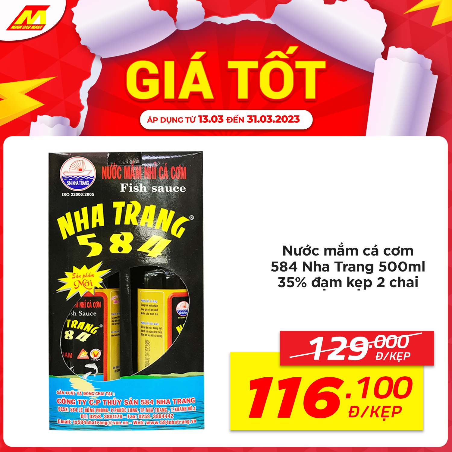 ?Nước mắm cá cơm 584 Nha Trang 500ml 35% đạm kẹp 2 chai còn 116.100vnd/kẹp (Giá thường 129.000vnd)