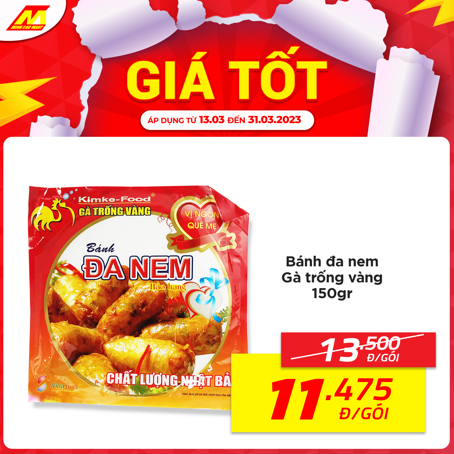 ?Bánh đa nem Gà trống vàng 150gr còn 11.475vnd/gói (Giá thường 13.500vnd/gói)