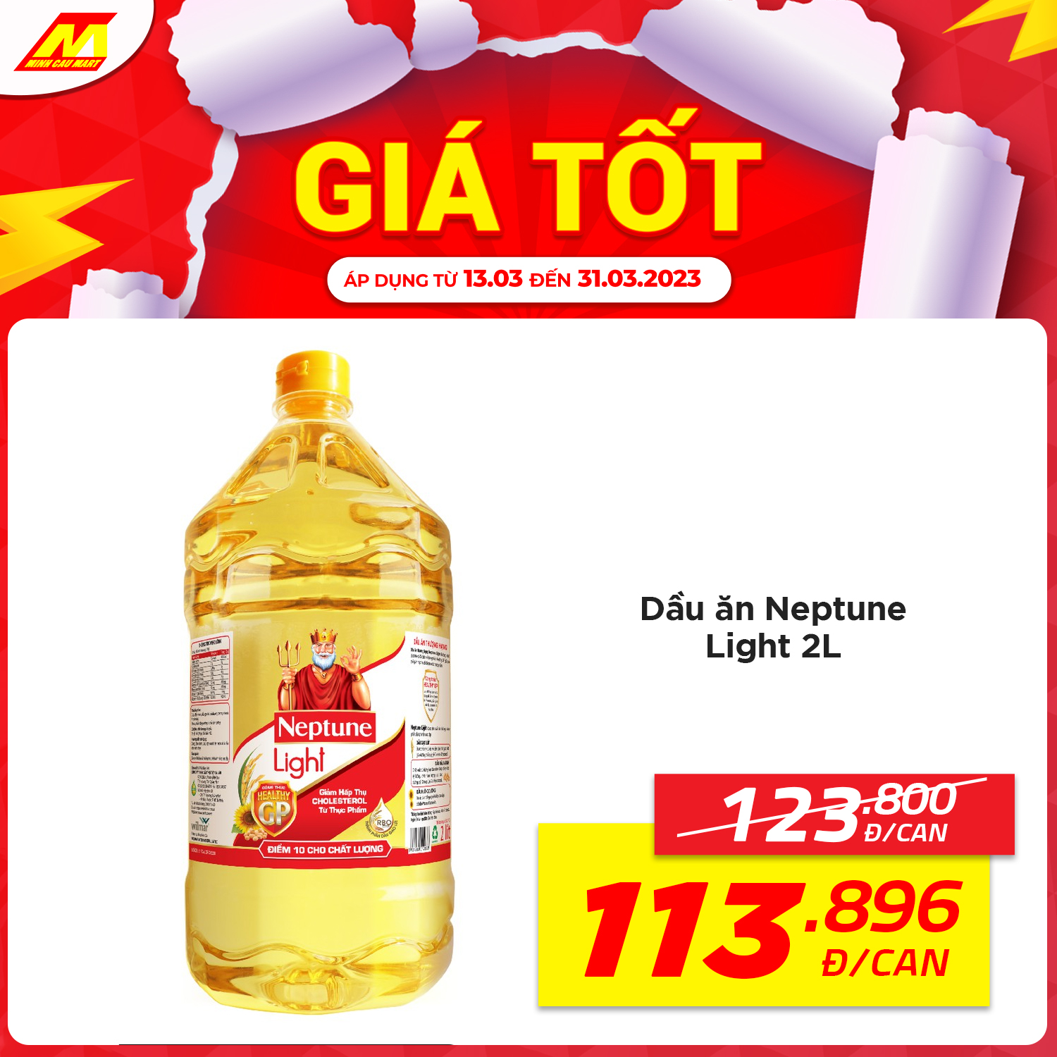 ?Dầu ăn Neptune Light 2L còn 113.896vnd/can (Giá thường 123.800vnd)