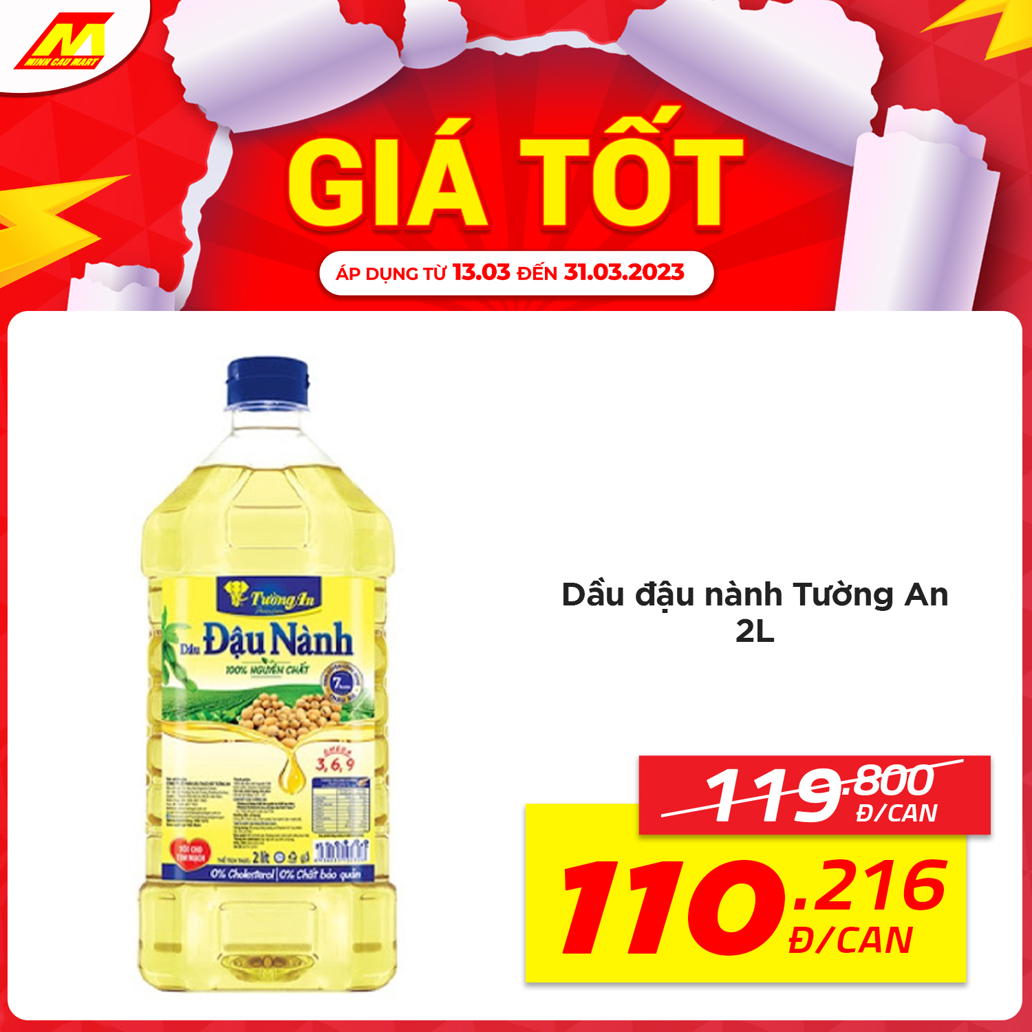 ?Dầu đậu nành Tường An 2L còn 110.216vnd/can (119.800vnd)
