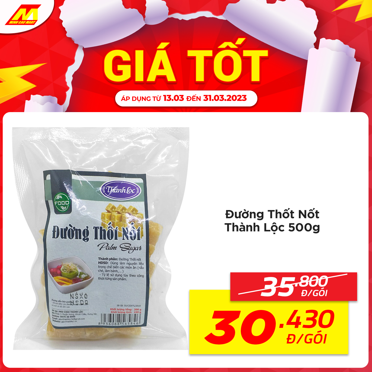 ?Đường thốt nốt Thành Lộc 500g còn 30.430vnd/gói (Giá thường 35.800vnd)