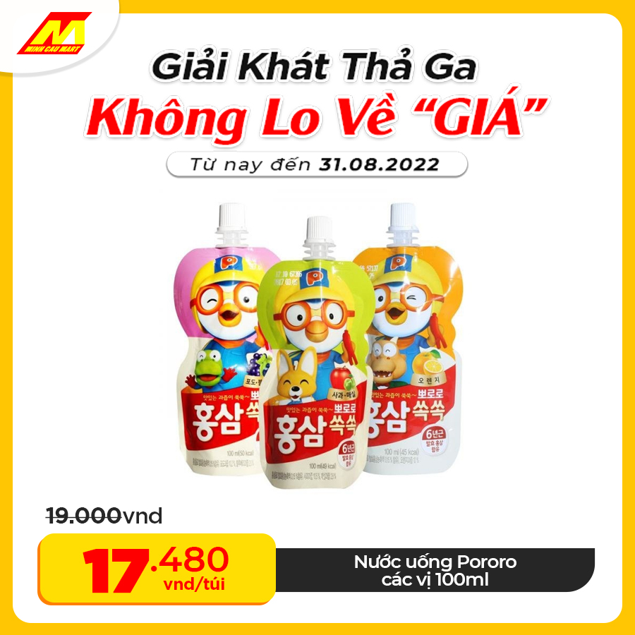 ?Nước uống Pororo các vị túi 100ml còn 17.480vnd/túi