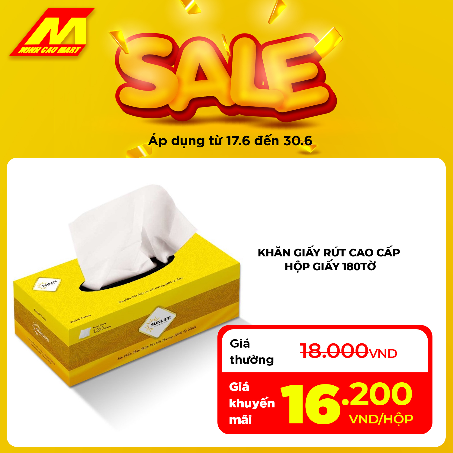 ⚡Khăn giấy rút cao cấp hộp giấy Sunlife 180 tờ GIẢM CÒN 16.200vnd/hộp