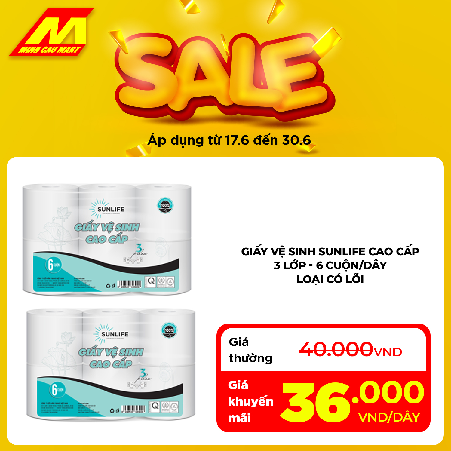 ⚡Giấy vệ sinh Sunlife cao cấp 3 lớp 6 cuộn loại có lõi GIẢM CÒN 36.000vnd/dây