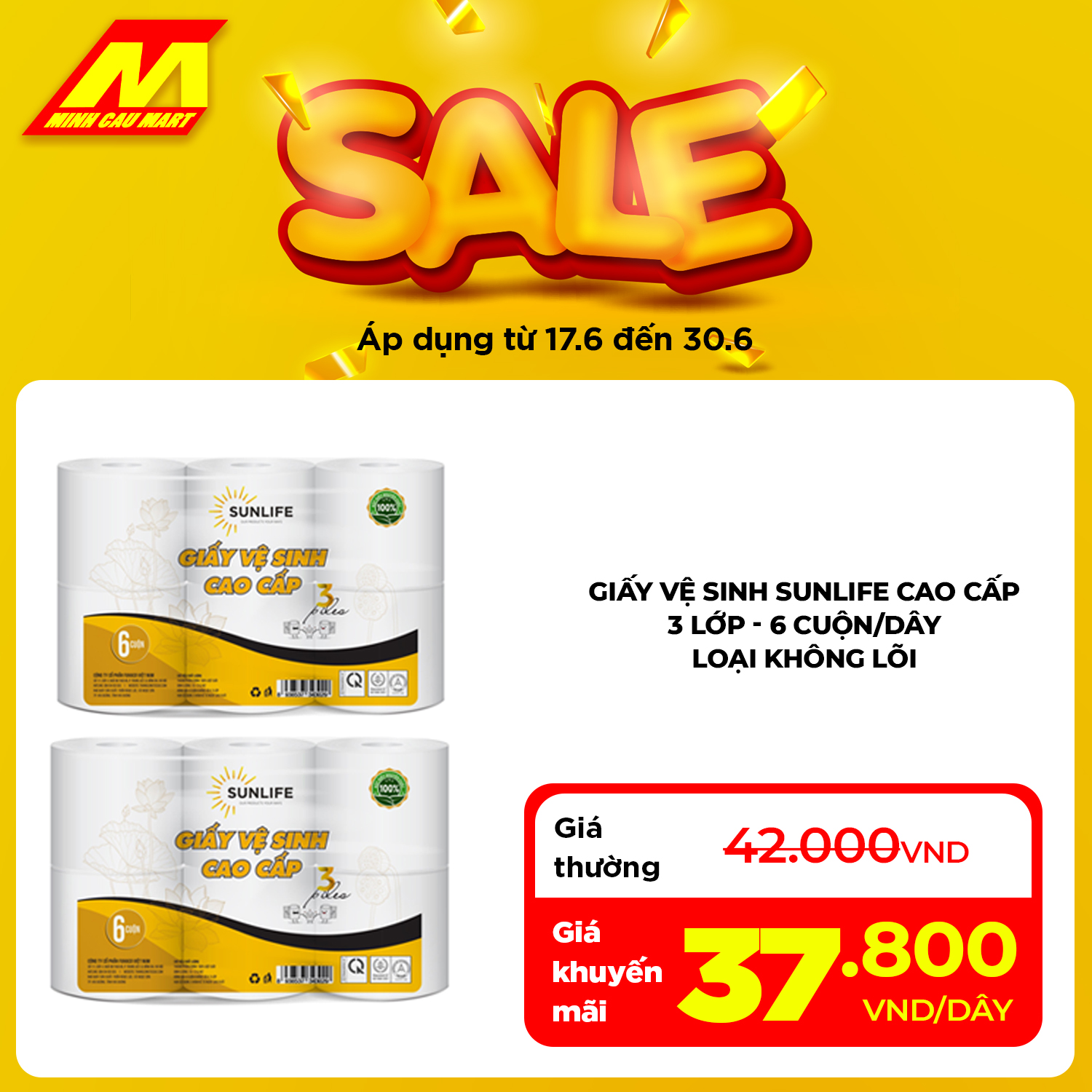 ⚡Giấy vệ sinh Sunlife cao cấp 3 lớp 6 cuộn loại không lõi GIẢM CÒN 37.800vnd/dây