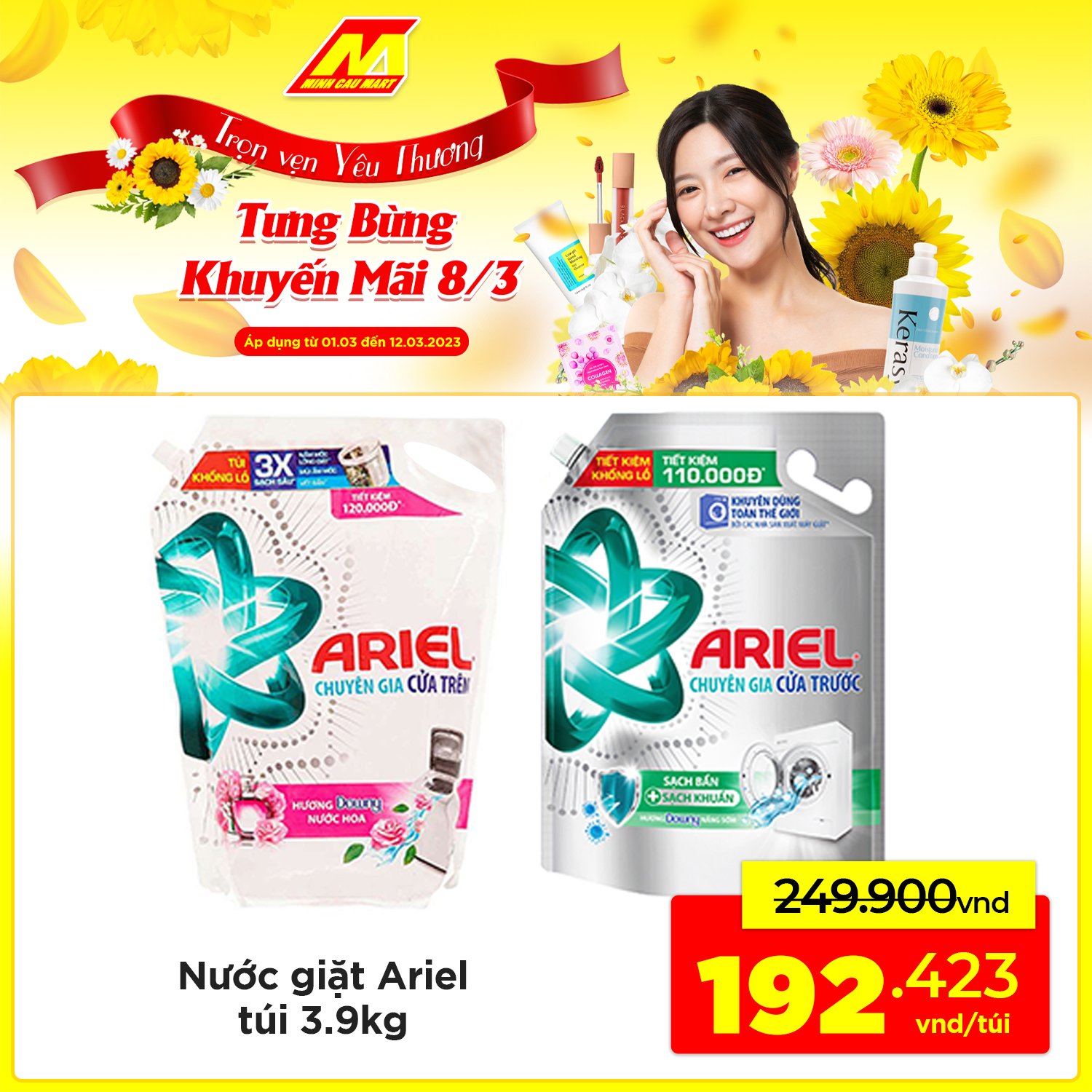 ?Nước giặt Ariel túi 3.9kg chỉ còn 192.423vnd/túi
