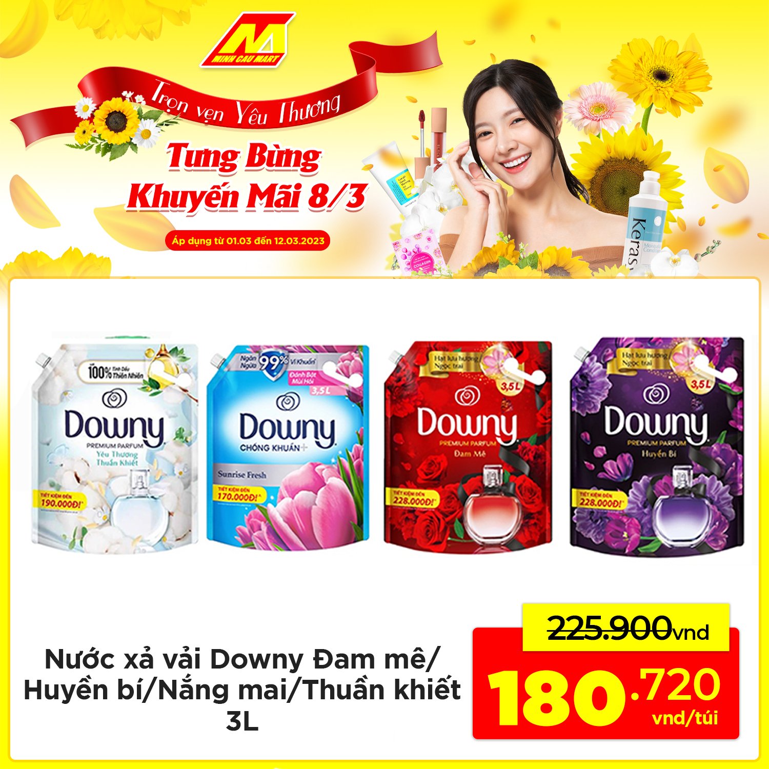?Nước xả vải Downy Đam mê/Huyền bí/Nắng mai/Thuần khiết 3L chỉ còn 180.720vnd/túi