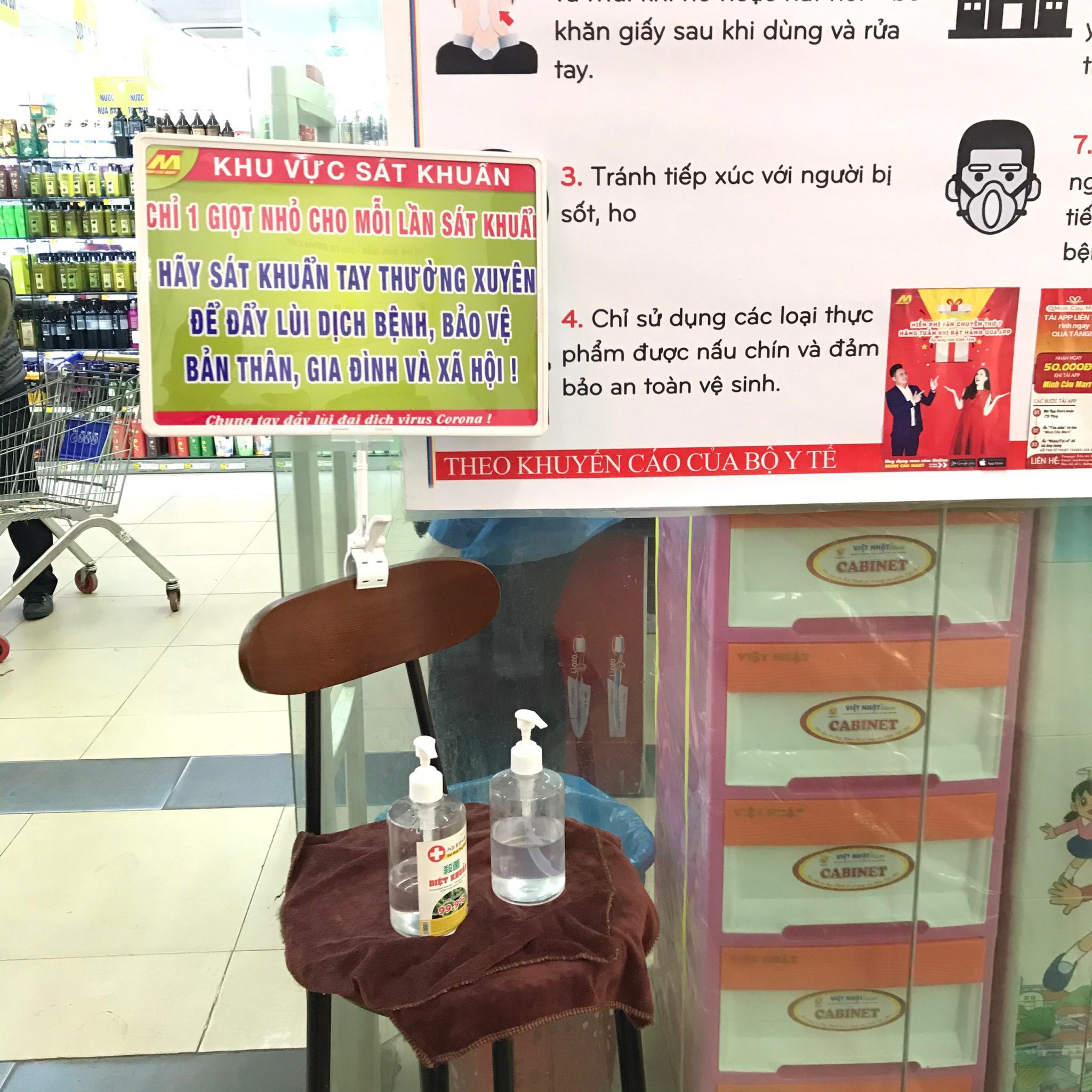 - Rửa tay sát khuẩn khi vào mua sắm và khi ra khỏi siêu thị ngay tại cửa ra vào.