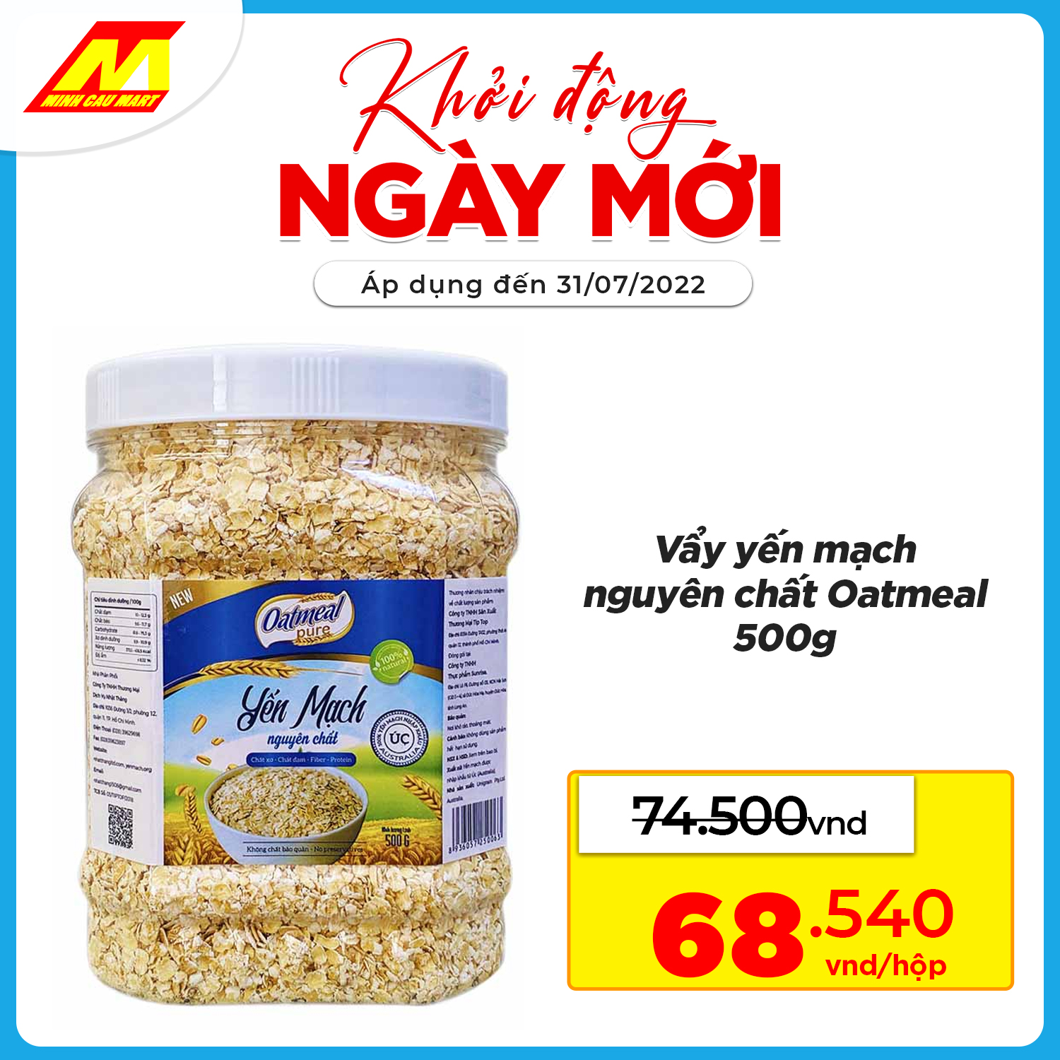 ?Vẩy yến mạch nguyên chất Oatmeal 500g CHỈ CÒN 687.540vnd/hộp