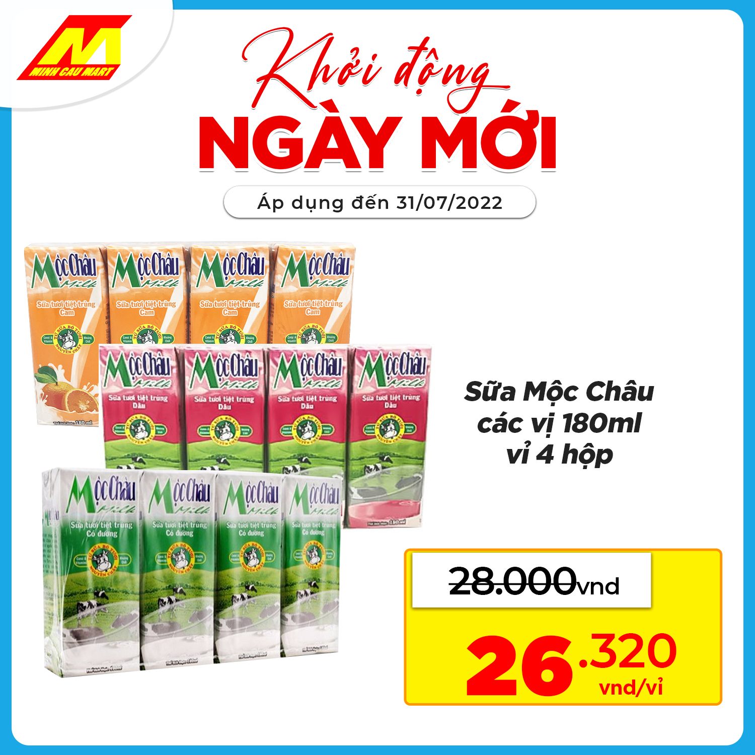 ?Sữa Mộc Châu các vị 180ml vỉ 4 hộp CHỈ CÒN 26.320vnd/vỉ
