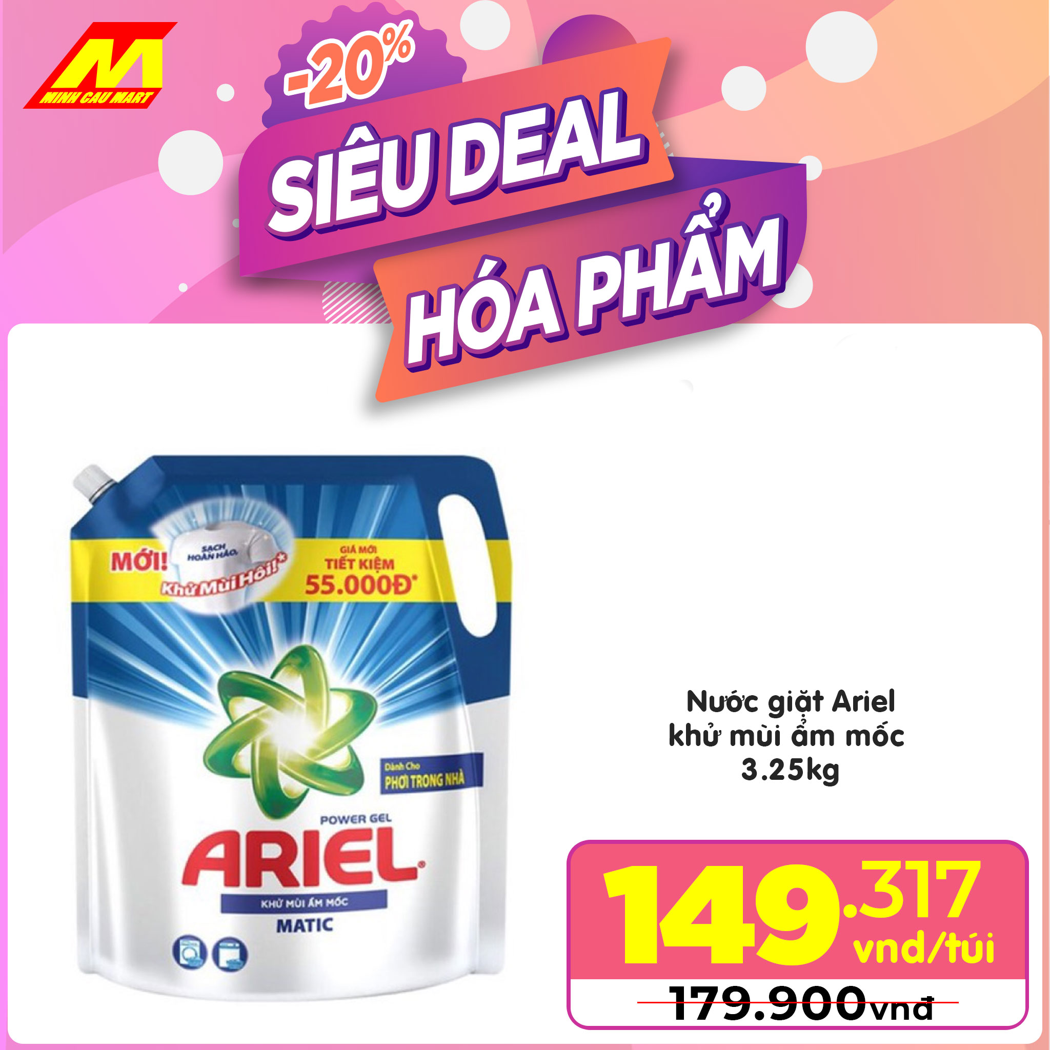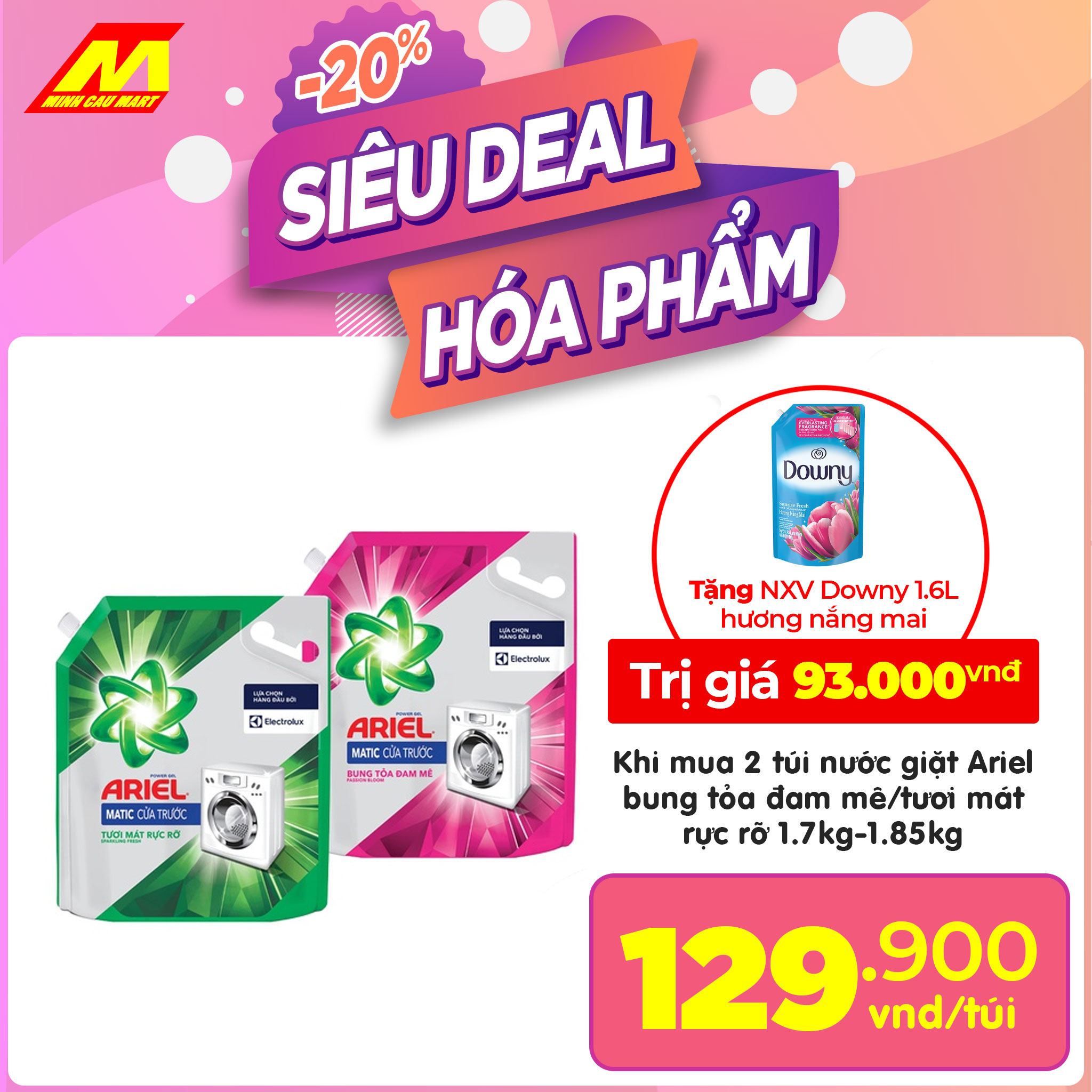 ? Nước giặt Ariel cửa trước bung tỏa đam mê/tươi mát rực rỡ 1.7kg-1.85kg chỉ 129.000 VNĐ/túi - ? Tặng ngay 01 NXV Downy 1.6L hương nắng mai trị giá 93.000 VNĐ khi mua 2 túi Nước Giặt.