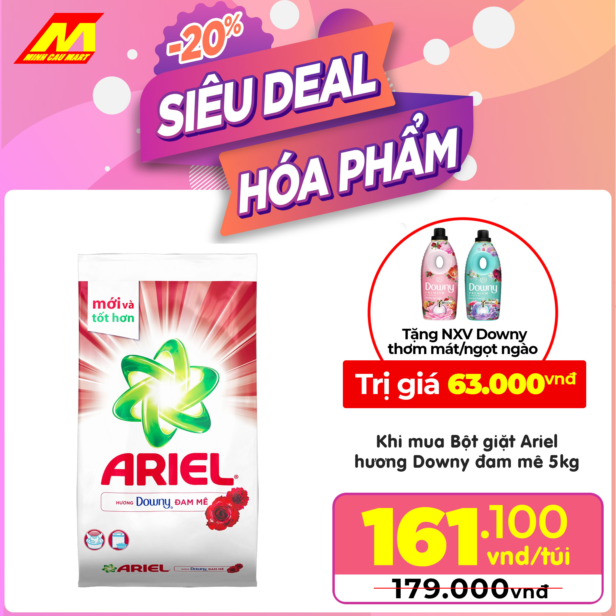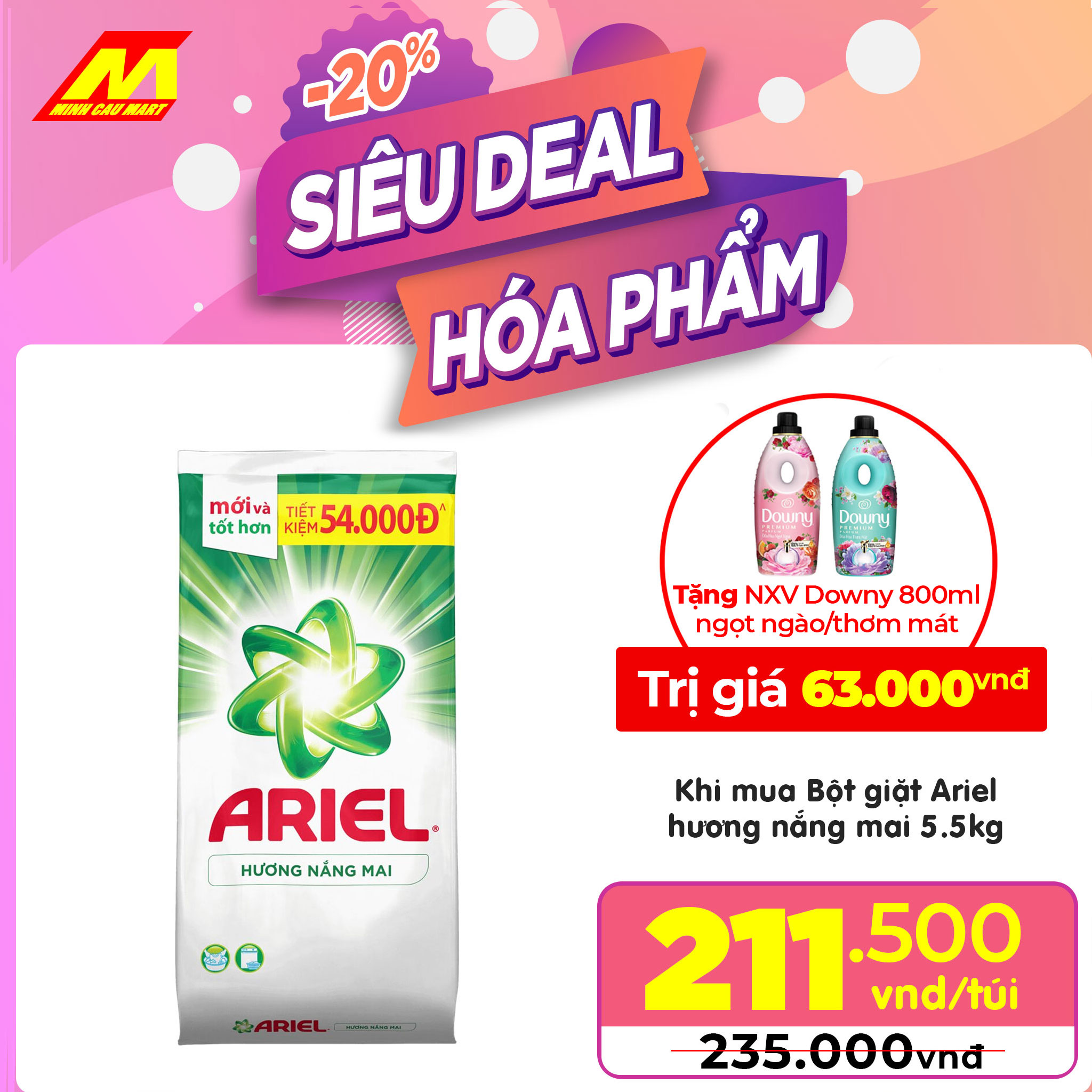 ?Bột giặt Ariel hương nắng mai 5.5kg chỉ còn 211.500 VNĐ/túi - ? Tặng ngay 01 chai/túi NXV Downy 800ml ngọt ngào/thơm mát trị giá 63.000 VNĐ