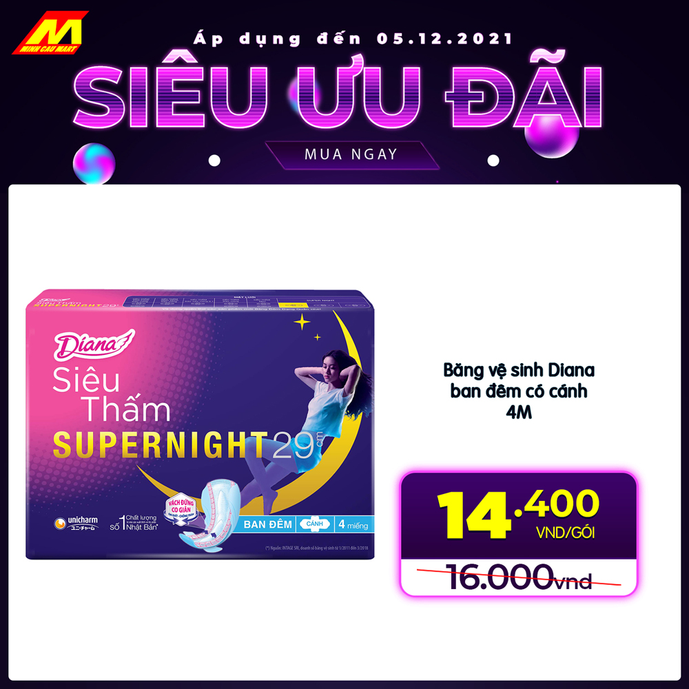 ?Băng vệ sinh Diana ban đêm có cánh 4M GIẢM CÒN 14.400 vnd/gói