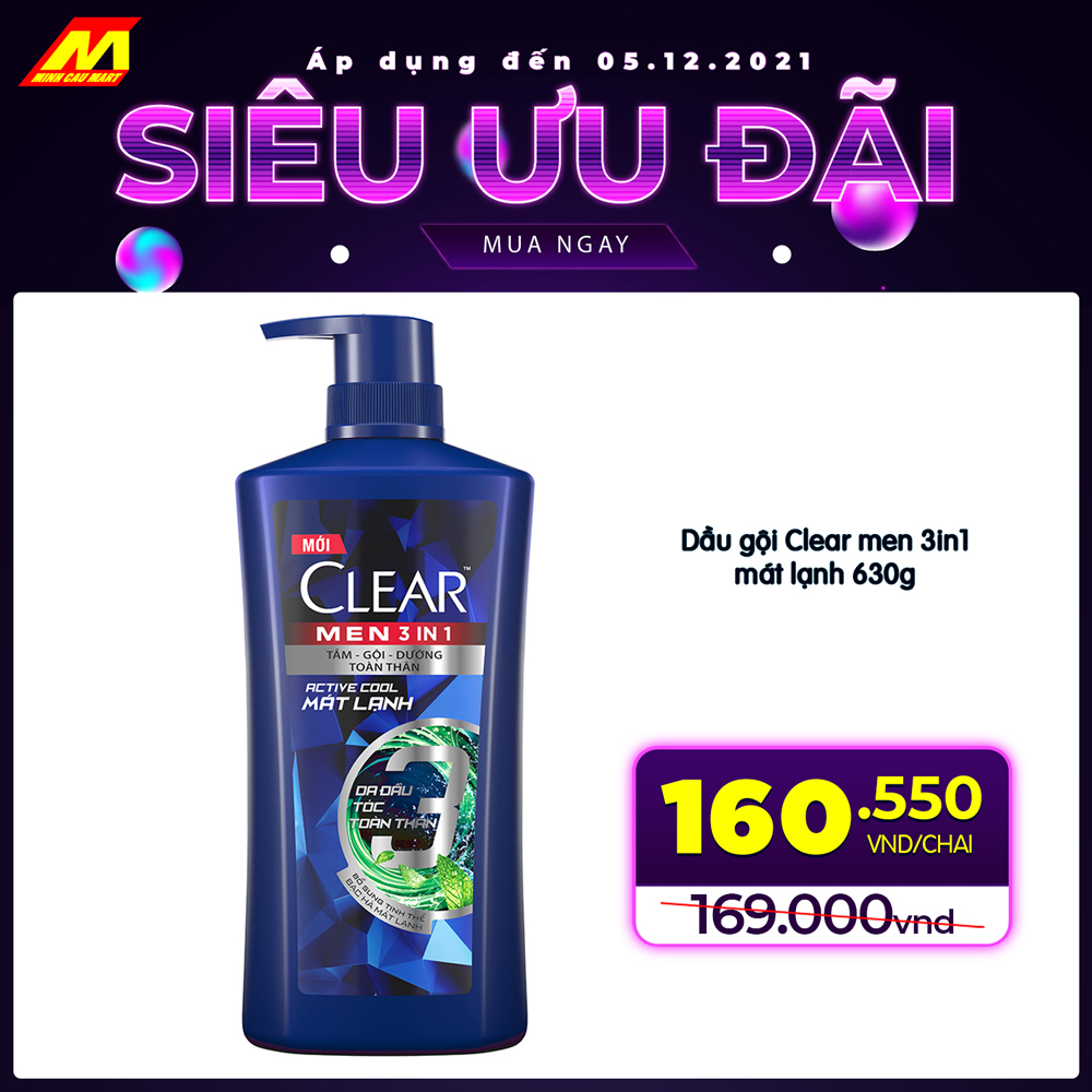 ?Dầu gội Clear men 3in1 mát lạnh 630g GIẢM CÒN 160.550 vnd/chai
