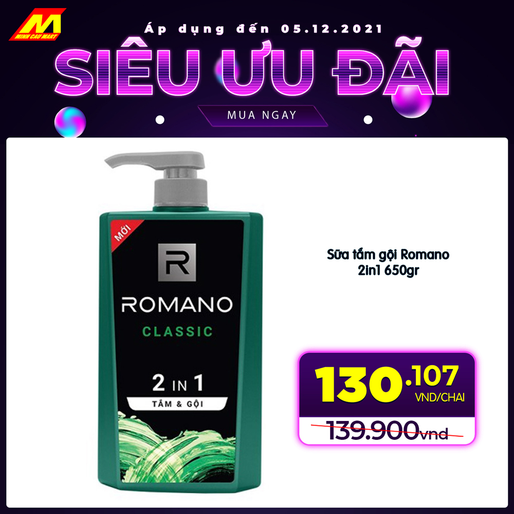 ?Sữa tắm gội Romano 2in1 650gr GIẢM CÒN 130.107 vnd/chai
