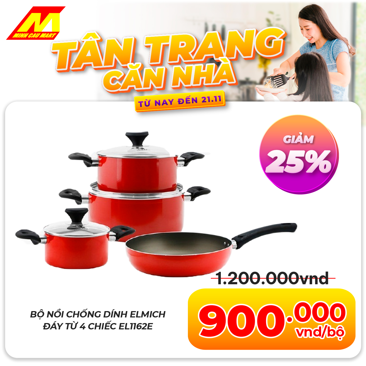 ? Bộ nồi chống dính Elmich đáy từ 4 ciếc EL1162E GIẢM CÒN 900.000VND/Bộ
