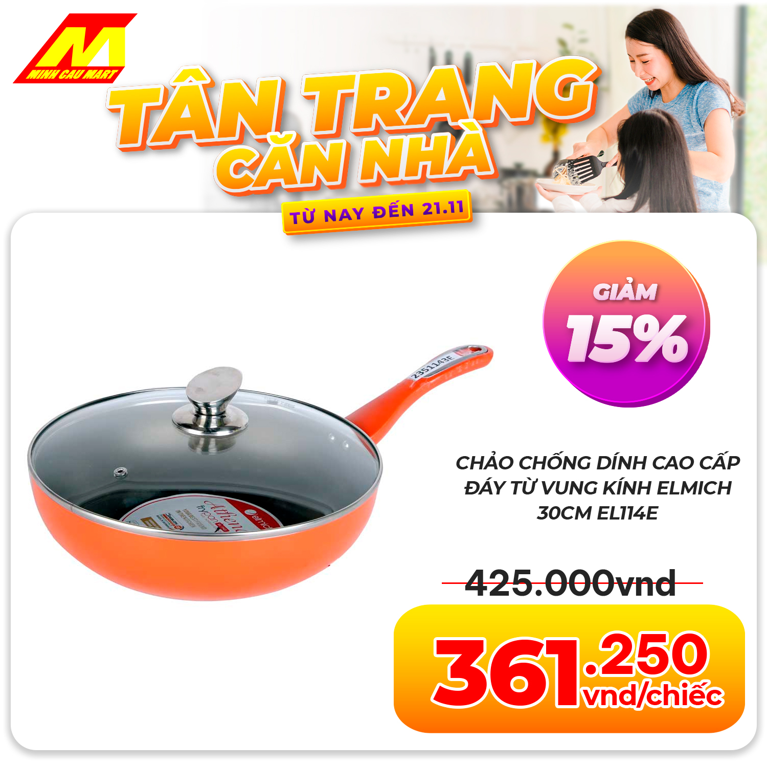 Chảo chống dính cao cấp đáy từ vung kính Elmich 30cm EL114E GIẢM CÒN 361.250VND/Chiếc