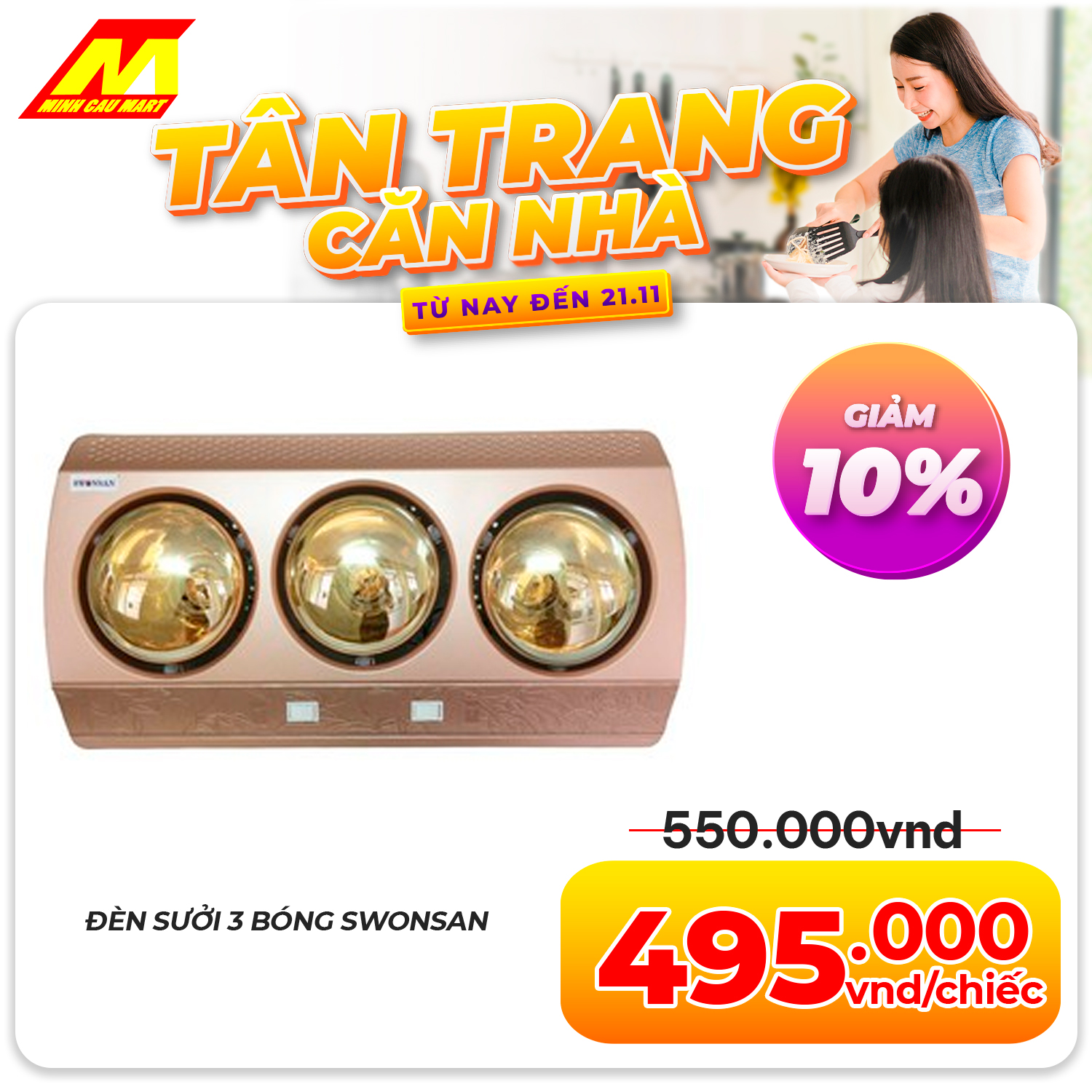 Đèn sưởi 3 bóng Swonsan GIẢM CÒN 495.000VND/Chiếc