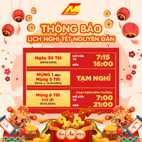 Siêu thị Minh Cầu gửi tới Quý khách hàng lịch HOẠT ĐỘNG & NGHỈ Tết Nguyên Đán 2024 như sau: