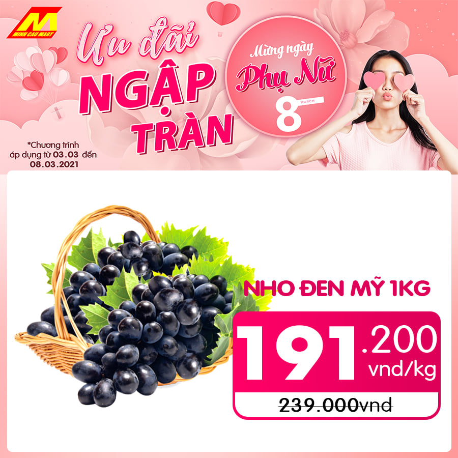 ? Nho đen NK Mỹ còn 191.200vnd/kg (giá gốc 239.000đ)