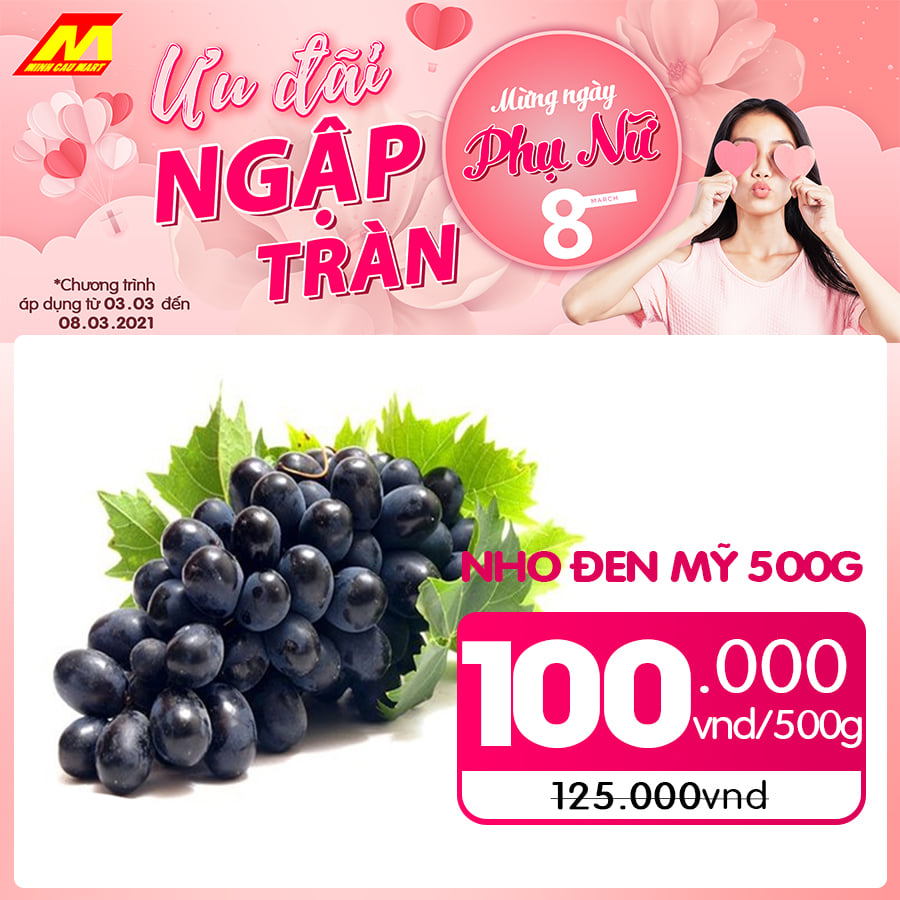 ? Nho đen NK Mỹ 500g còn 100.000vnd/kg (giá gốc 125.000đ)